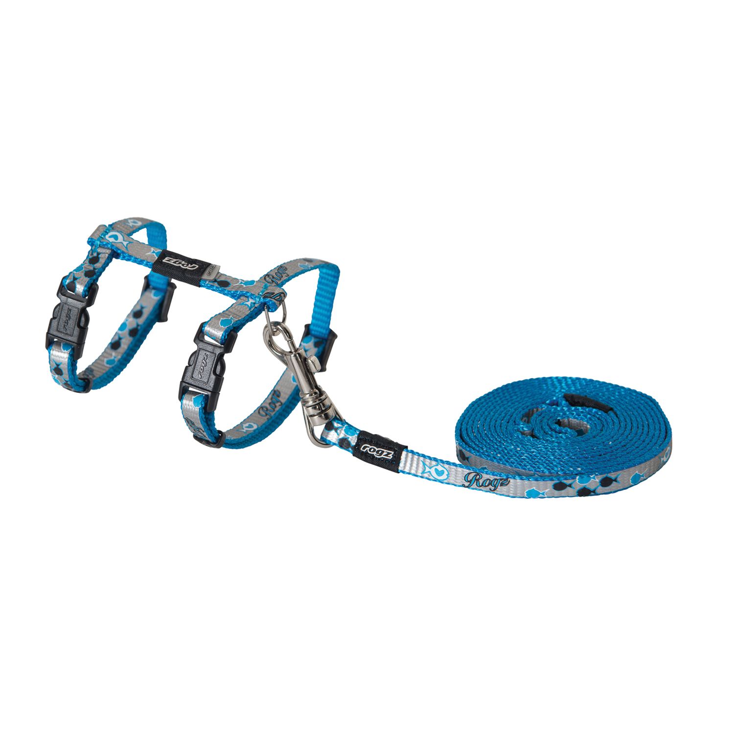 Kassi traksid+jalutusrihm Rogz Reflectocat XS sinine Fish