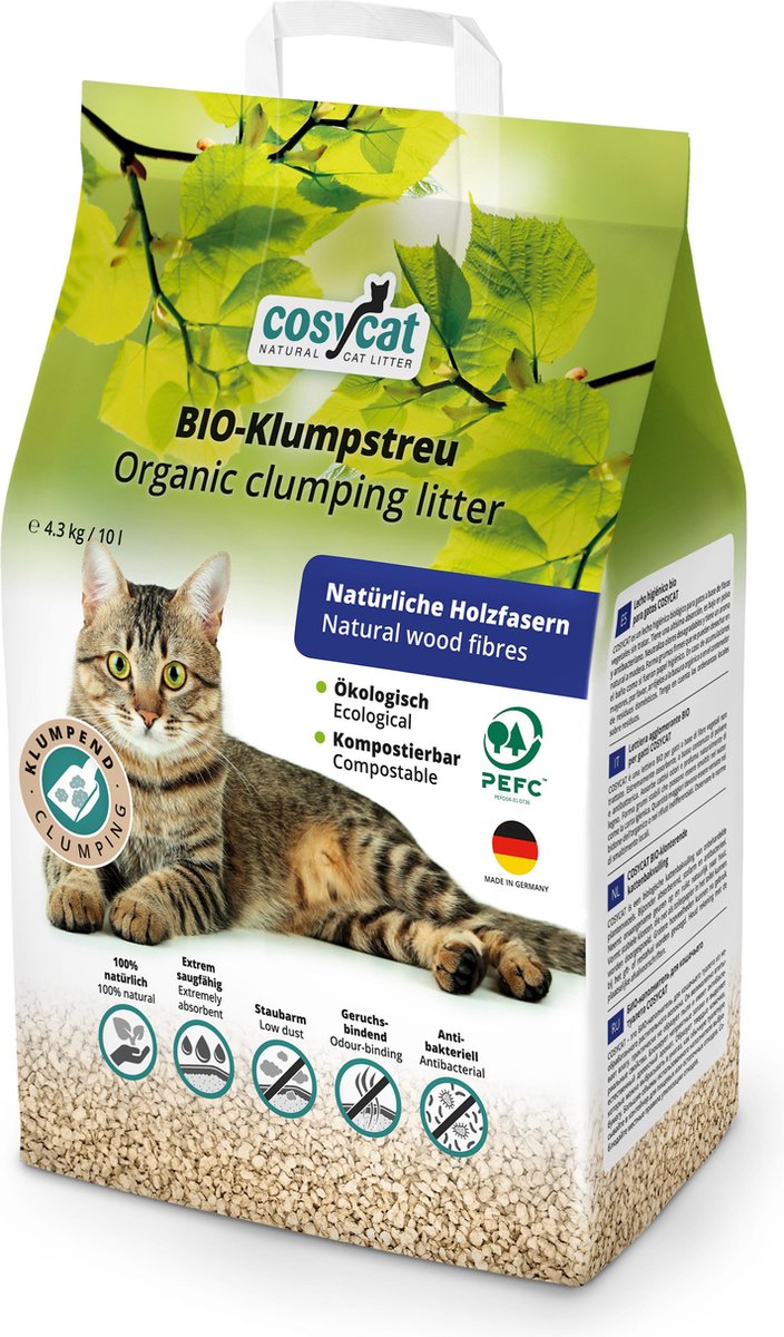 CosyCat kassiliiv on toodetud looduslikust puidust, kasutades säästlikult majandatud metsast pärit puitu. Allapanu on PEFC-sertifikaadiga. Looduslikud kiud moodustavad uriiniga kokku puutudes püsivaid tükke, mida saab tualetti maha loputada. Suuremad kogused võib kõrvaldada biolagunevate jäätmetena või koos olmejäätmetega.klombistub kiiresti ja tõhusaltäärmiselt imavpüüab kinni lõhnadantibakteriaalneeriti ökonoomnekaalub vähekeskkonnasõbralikkomposteeritavutiliseeritav koos olmeprügiga