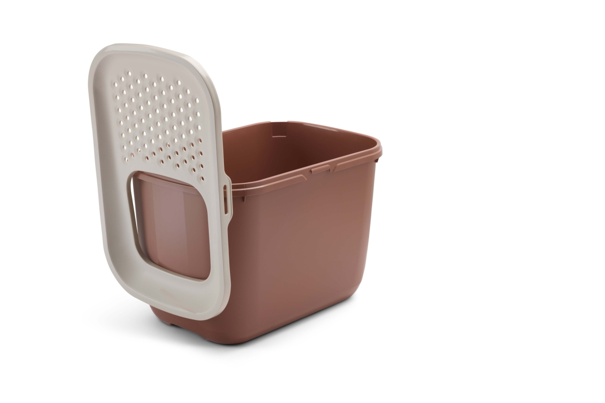 - Kaasaegne ülemise sissepääsuga kassitualett