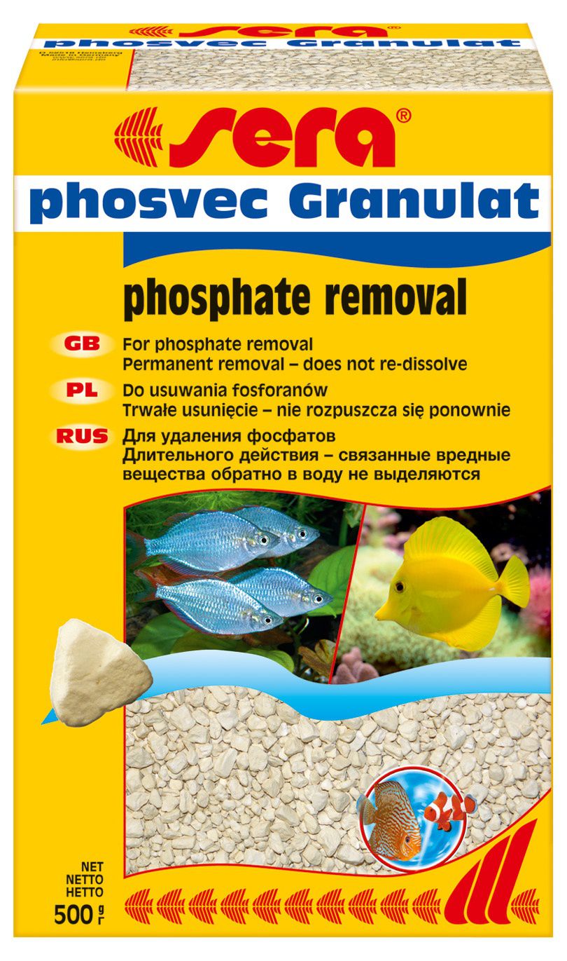 sera phosvec Granulat eemaldab fosfaadi kergesti ja ohutult ning pikaajalise mõjuga. Graanulid jäävad aktiivseks kuni kolm kuud, vastavalt akvaariumi suurusele ja vee saastatusele. Sobib mageda ja merevee filtreerimiseks.