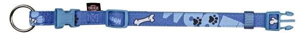Kaelarihm “Woof”- mustriga- sujuvalt reguleeritav- eriti vastupidav pingutamisel S-M- nailon: helesinine- muster: helesinine südamete ja kontidega
