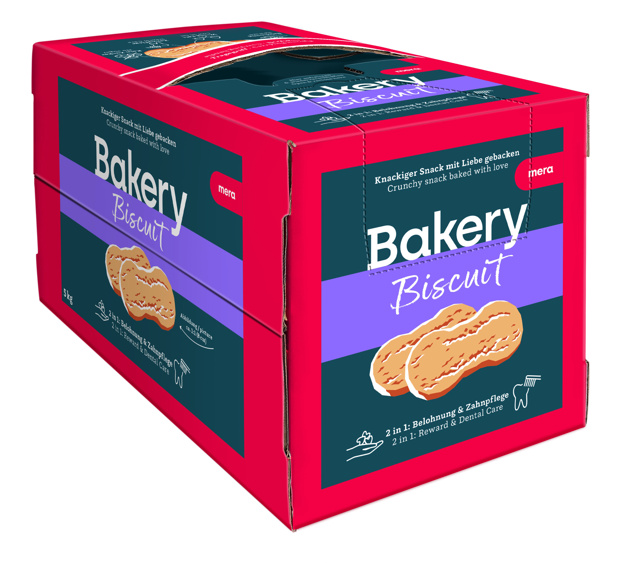 Mera küpsise krõbe kõva konsistents tugevdab teie koera hambaid ja puhastab need samal ajal loomulikult toidujääkidest ja hambakivist.