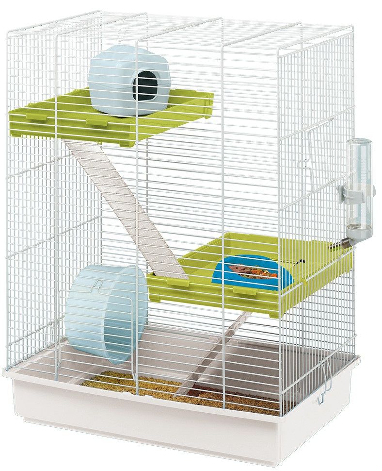 Hamster Tris – vertikaalne puur hamstritele, väljatöötatud hamstri aktiivseks ajaveetmiseks, samuti väga kompaktne ja ei võta palju ruumi. Korruste vahel on redelid, mis on tehtud spetsiaalselt aktiivsetele hamstritele. Komplektis on samuti erinevaid aksessuaare: väike plastikust majake, ratas, joogianum ja söögikarp. Väikesed mugavad uksed puuri eesmises osas sobivad igapäevaseks koristamiseks. Täielikuks puuri puhastamiseks tuleb alumine puuri osa ära võttaIseloomustus: * Vertikaalne puur, mis tagab rohkem ruumi* Rippuvad puhkekohad, mis on ühendatud redelitega*Mahavõetav alus, kergeks koristamiseks*Hinnas olevad aksessuaaridMõõdud: 46 x 29 x 58 cm
