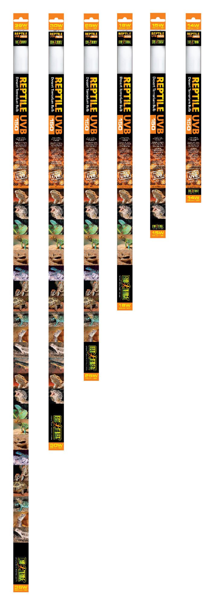 Exo-Terra UVB150 on pikkade ultraviolettlampide seeria kõrbesterariumidele. pikkuse tõttu on UV-kiirgus kogu terraariumis ühtlaselt jaotunud. Kujundatud kõrbe roomajatele. See suurendab looma isu ja aktiivsust, aktiveerib paaritumise käitumist. UV-kiirgus soodustab D3-vitamiini tootmist ja kaltsiumi imendumist, mida roomajad vajavad tervislikuks ainevahetuseks. Pikkus 90 cm.