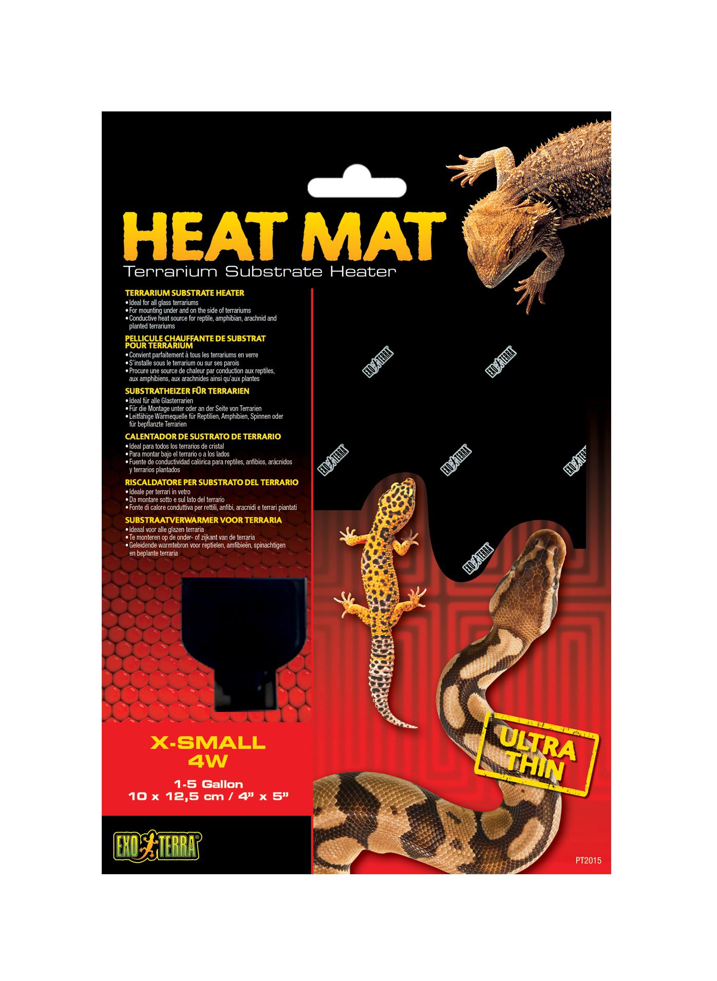 Exo Terra Heat Mat – termomatt terraariumi põhja soojenduseks. Tagab terraariumi põhja soojendust. See on oluline paljudele reptiilide, kahepaiksete ja lülijalgsete liikidele. Looduses, saavad need loomad soojust mitte ainult päikesest, vaid ka päikse käes kuumenenud substraadist. Ja loomadele, mis on aktiivsed öösel ja videviku ajal, soojenenud päeva jooksul pinnas on ainuke soojuse allikas. Vaiba kleepuv kate aitab paigutada seda nii terraariumi alla kui ka selle seintele. Suurus: 10×12,5cmArtikkel: 0832